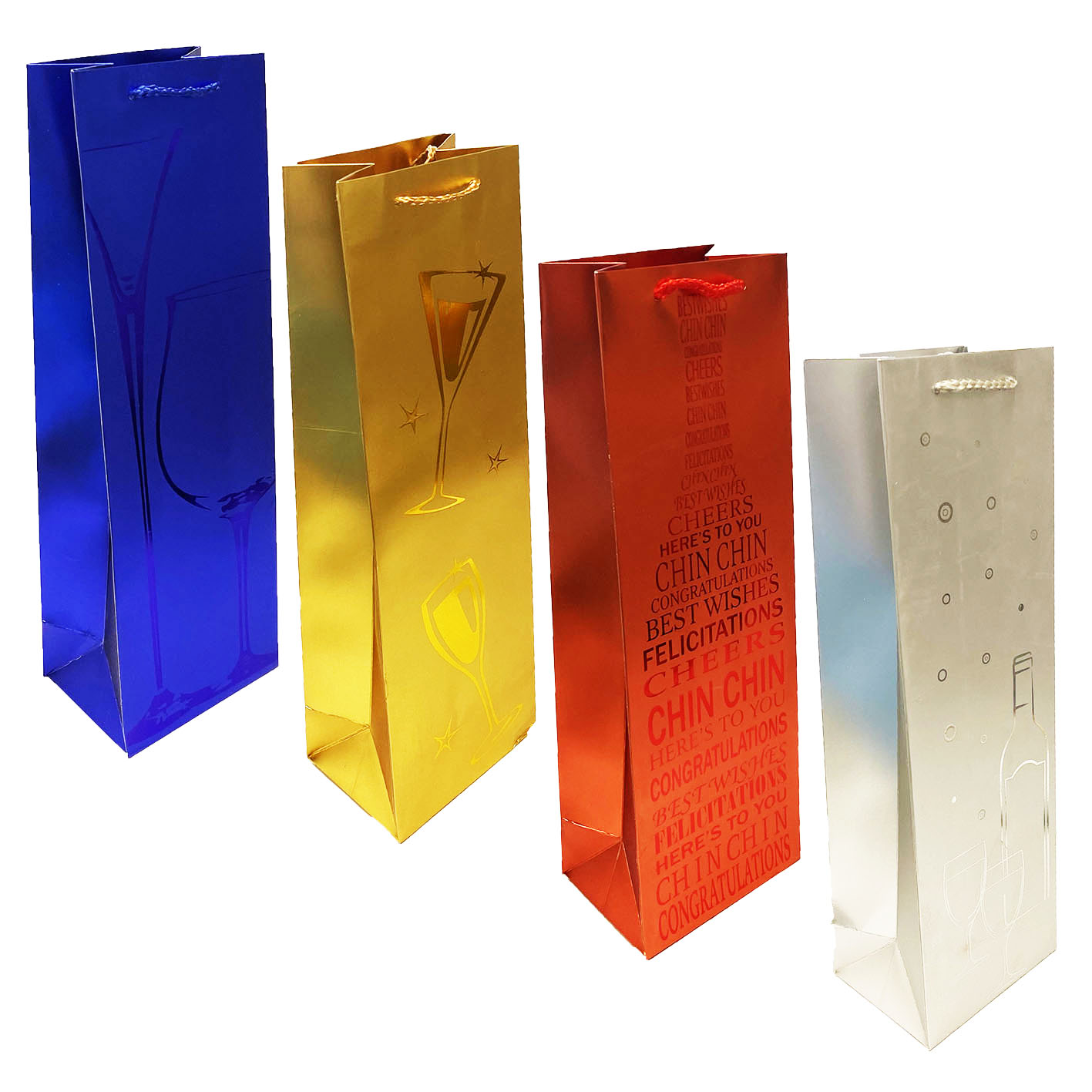 Dárková taška na láhev „Modrá, zlatá, červená, stříbrná“ 36×13cm