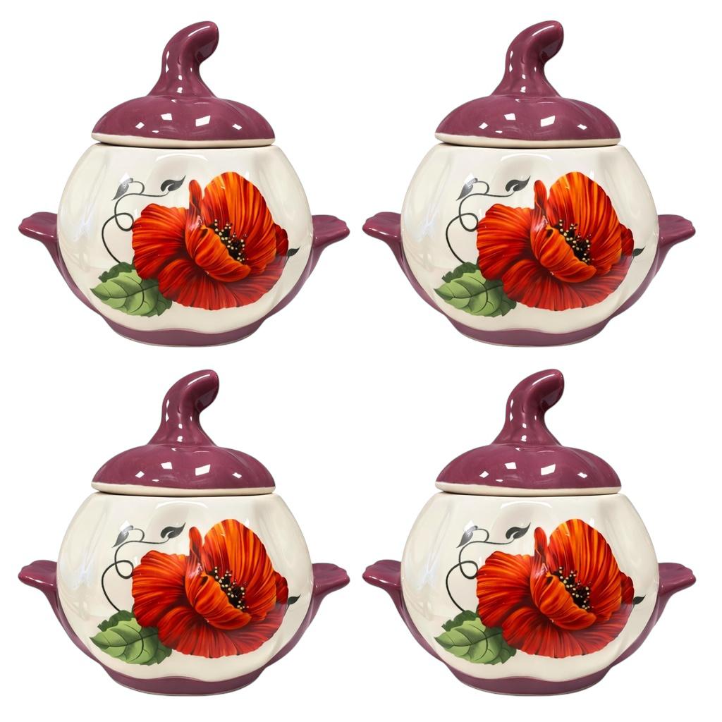 Keramický hrnec Červené květy 0,75 L