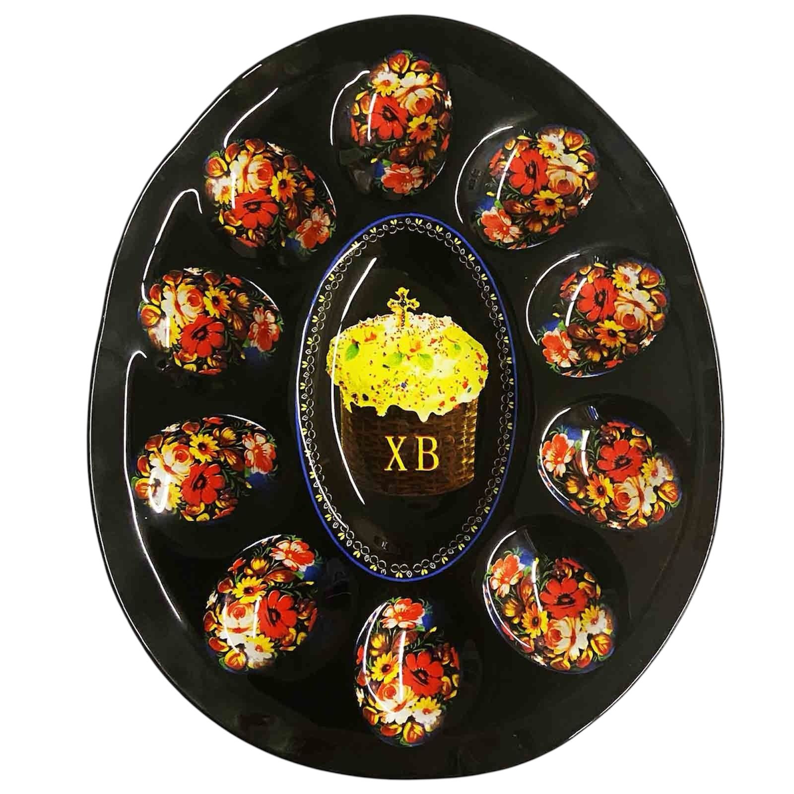 Skleněný podnos na 10 velikonočních vajec Velikonoce, Žostovo 24,5 × 21 cm