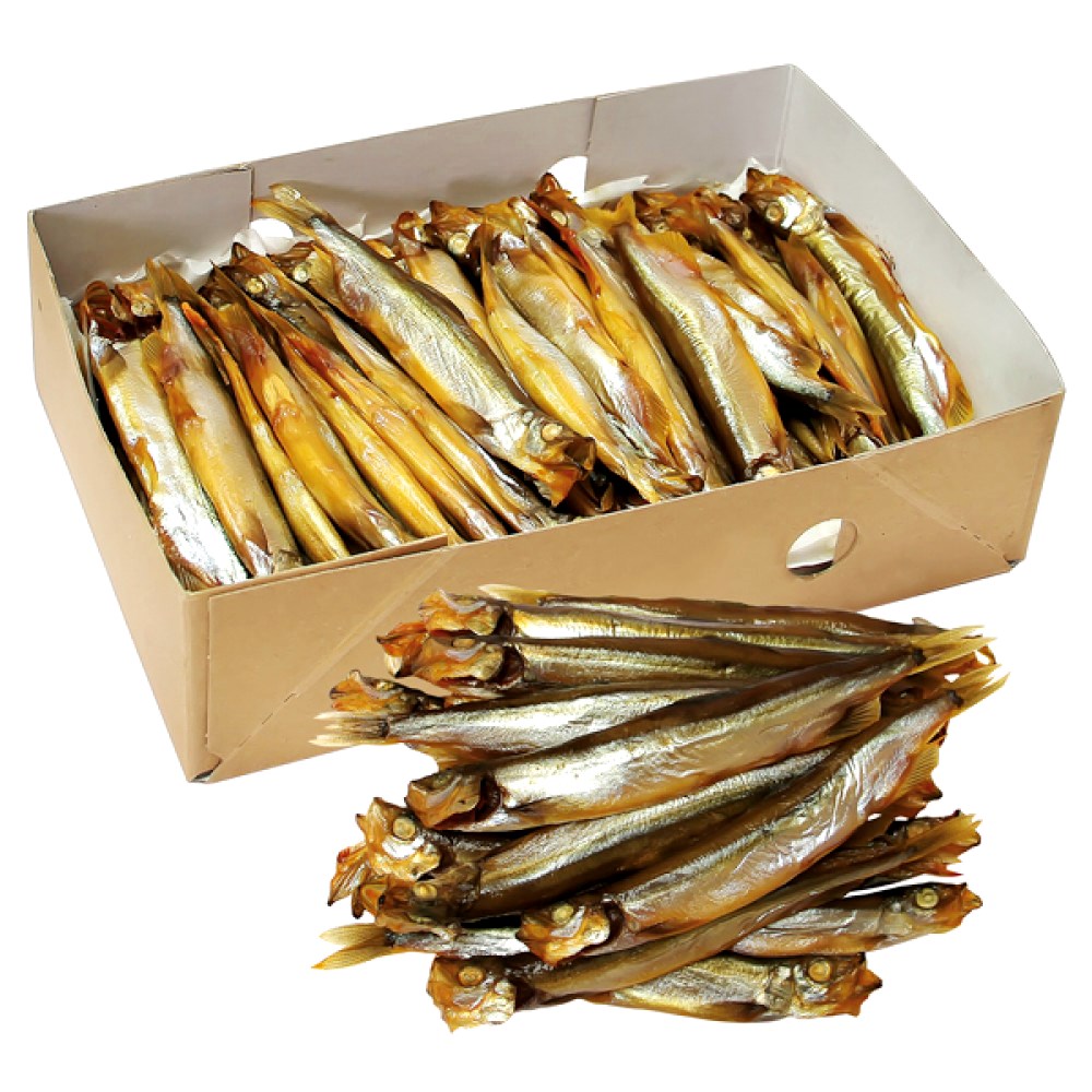 Složení: Huňáček severní (Mallotus villosus), sůl, regulátory kyseliny: E262, E260; kouř.