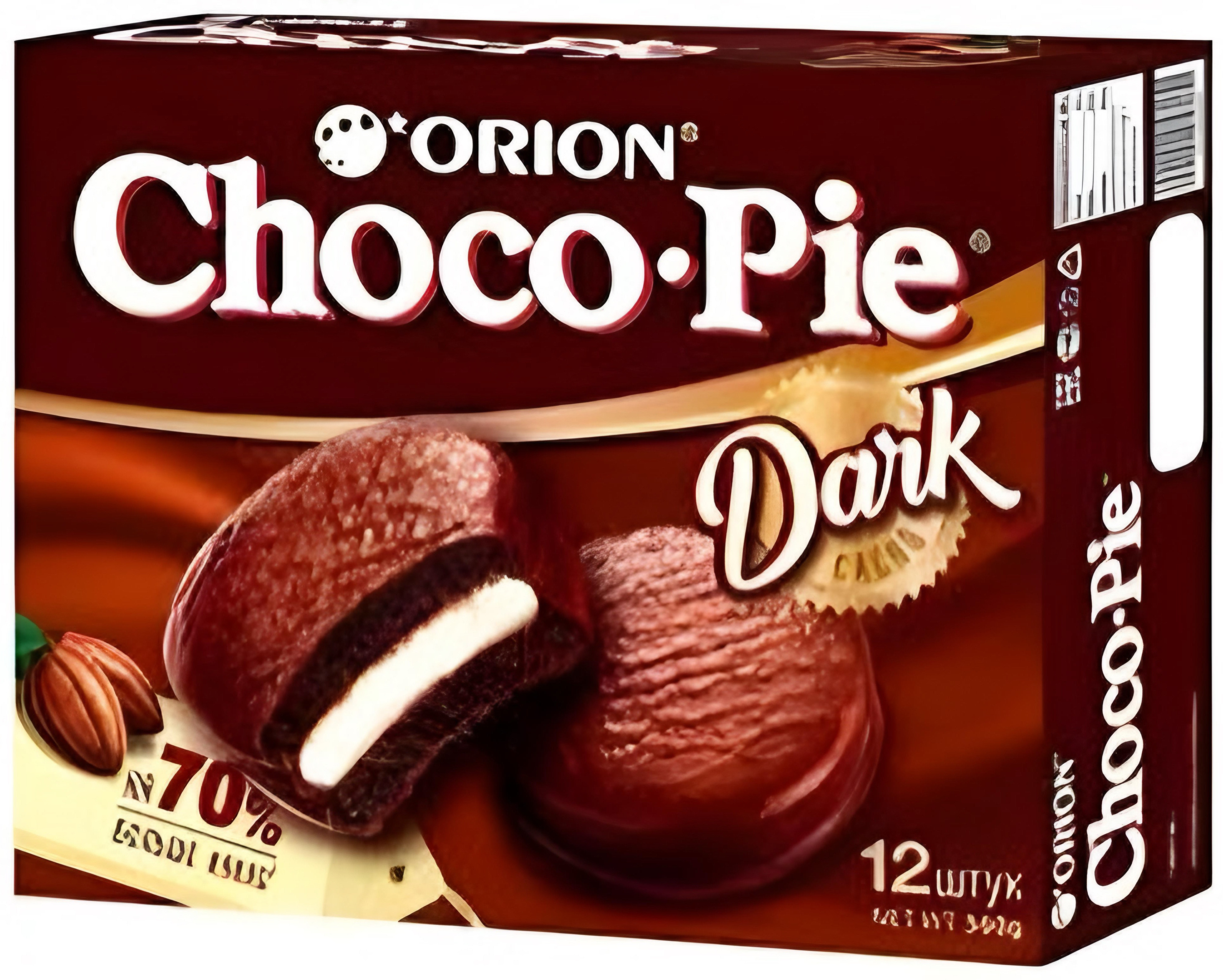 Orion Choco Pie Dark - продолжающийся успех Choco Pie Original от Orion вдохновил нас на разработку новых рецептур, одним из которых является Choco Pie Dark. Мы взяли какао-бобы и наш традиционный рецепт, вложили в это свое сердце и душу, и создали новый Choco Pie в темном формате, в котором на 70% больше какао.