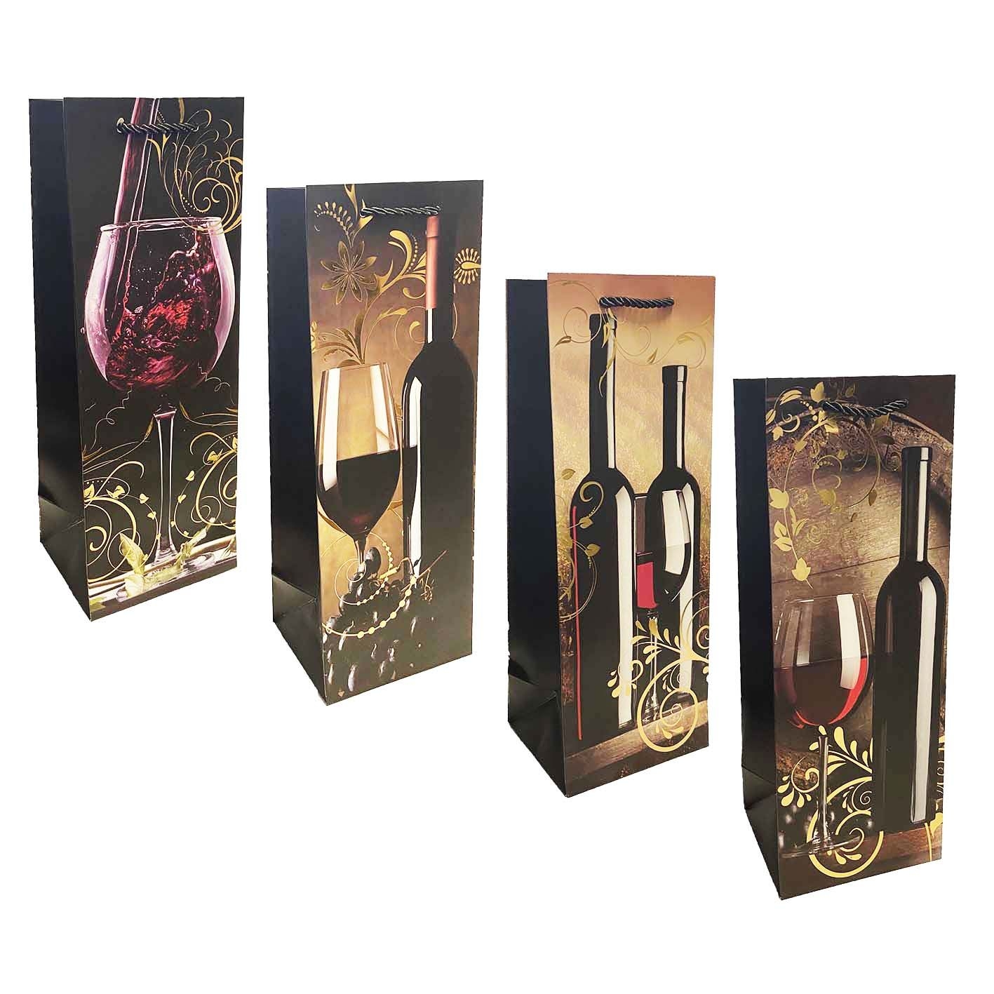 Dárková taška na láhev 36×13cm „Červené víno“ Skutečný výrobek se může lišit od uvedeného na obrázku. Cena za 1 ks.