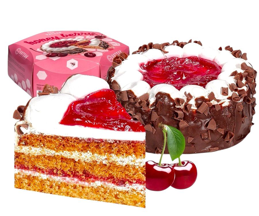 Торт Медовая ягода с кремом и вишнёвой прослойкой 500г Vatsak