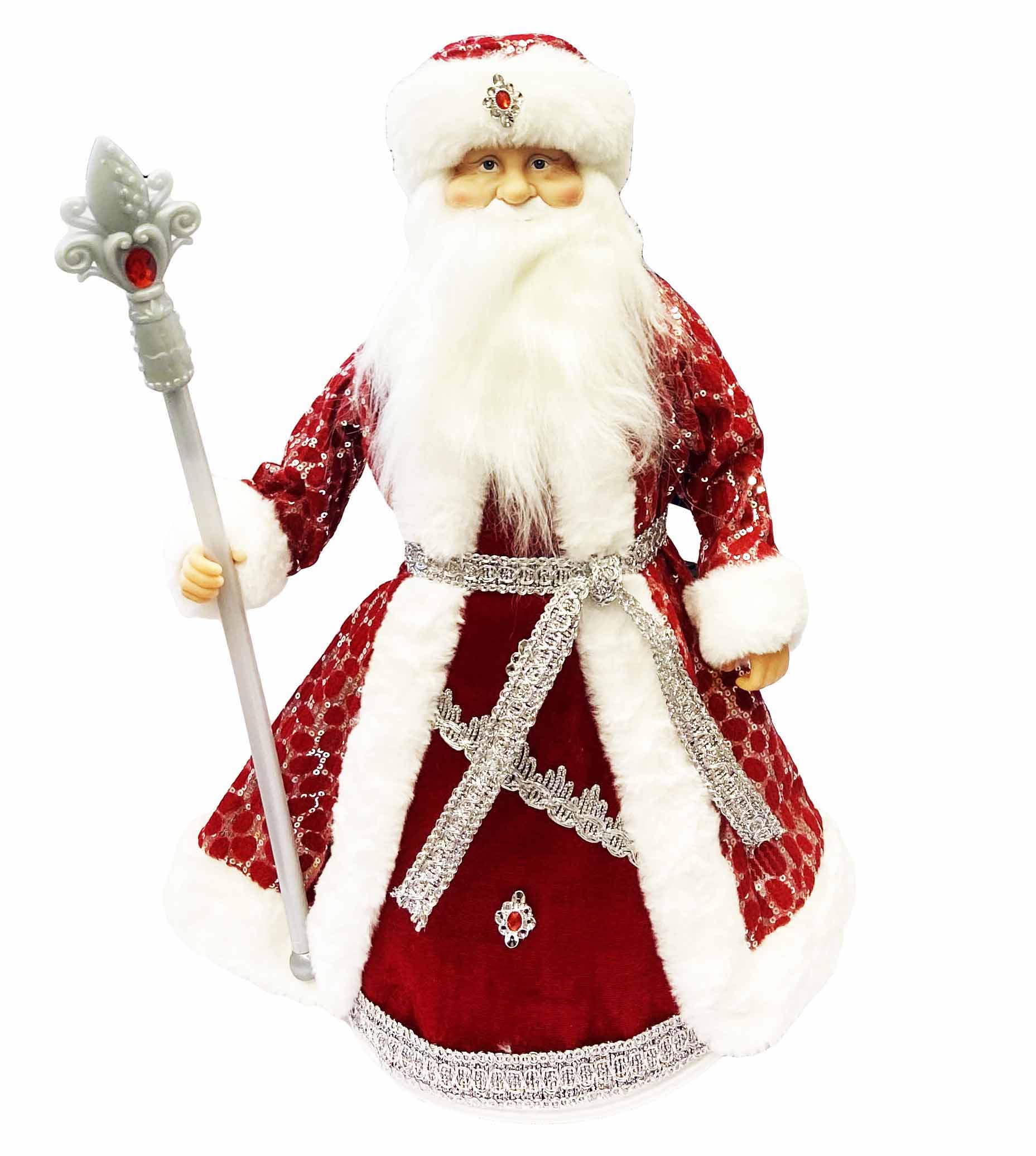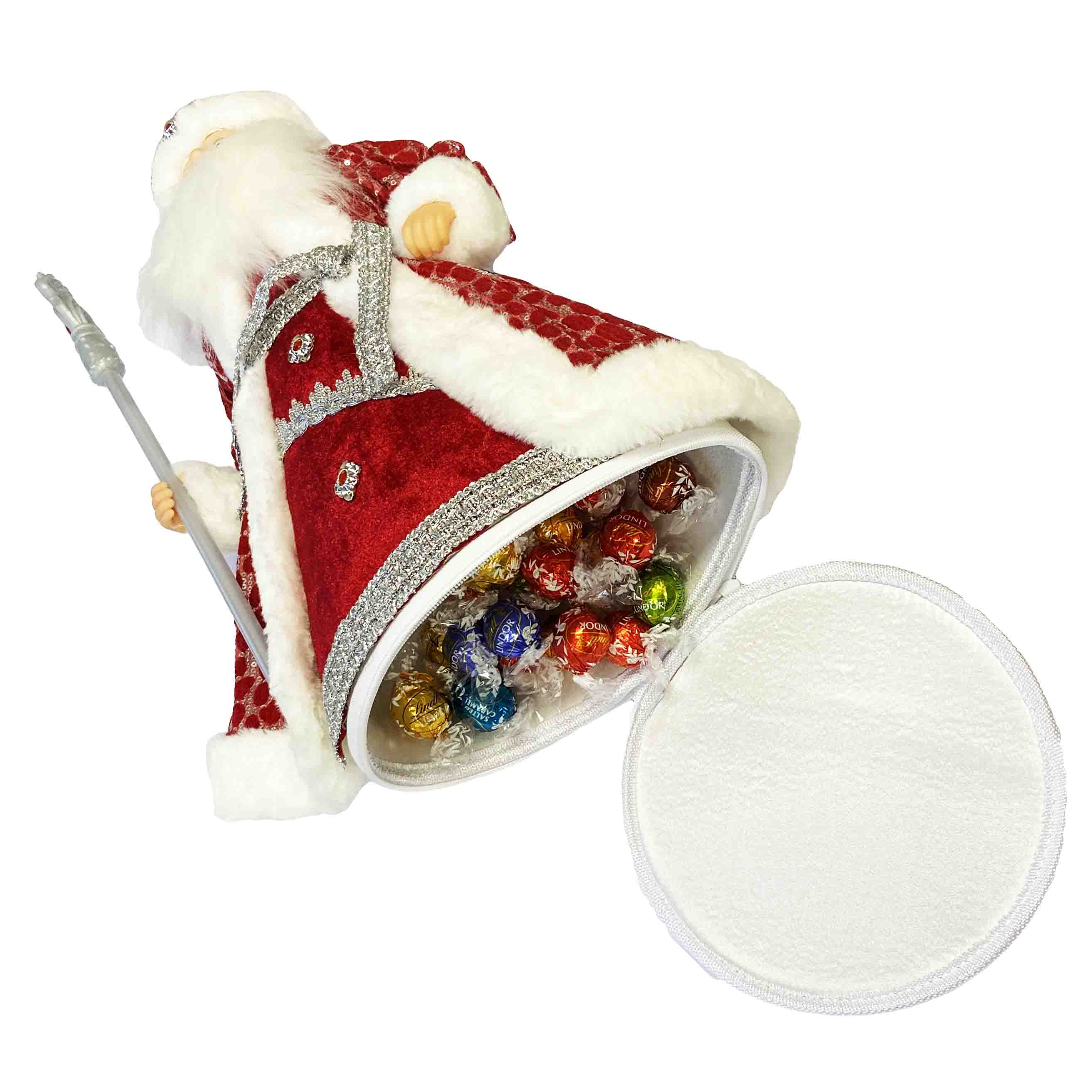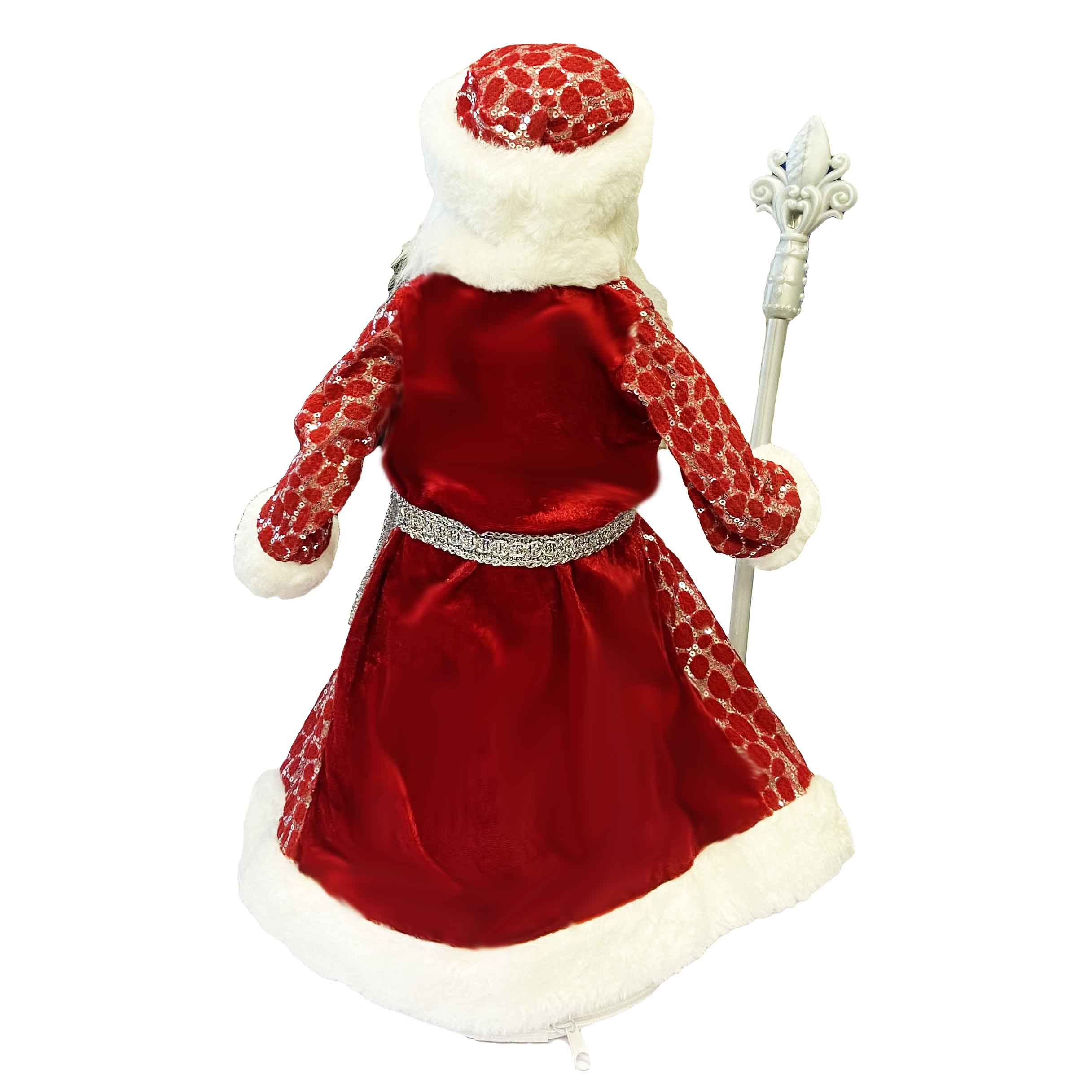 Фигурка Деда Мороза в красно-белом с серебром, с отделением для сладостей и подарков, 50 см