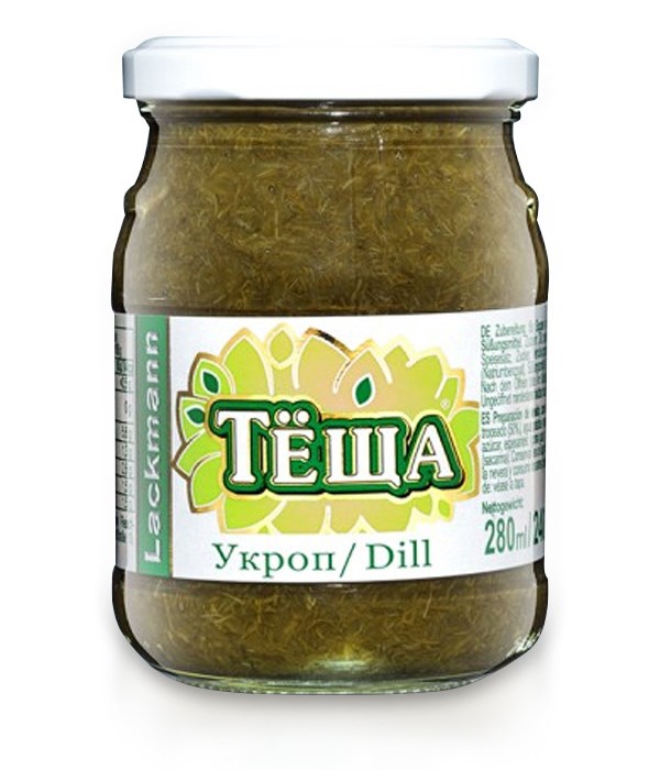 Složení: kopr drcený 50%, pitná voda, brandy ocet, jedlá sůl, cukr, zahušťovadlo: guarová guma, konzervant: benzoan sodný, sladidlo: sacharin.