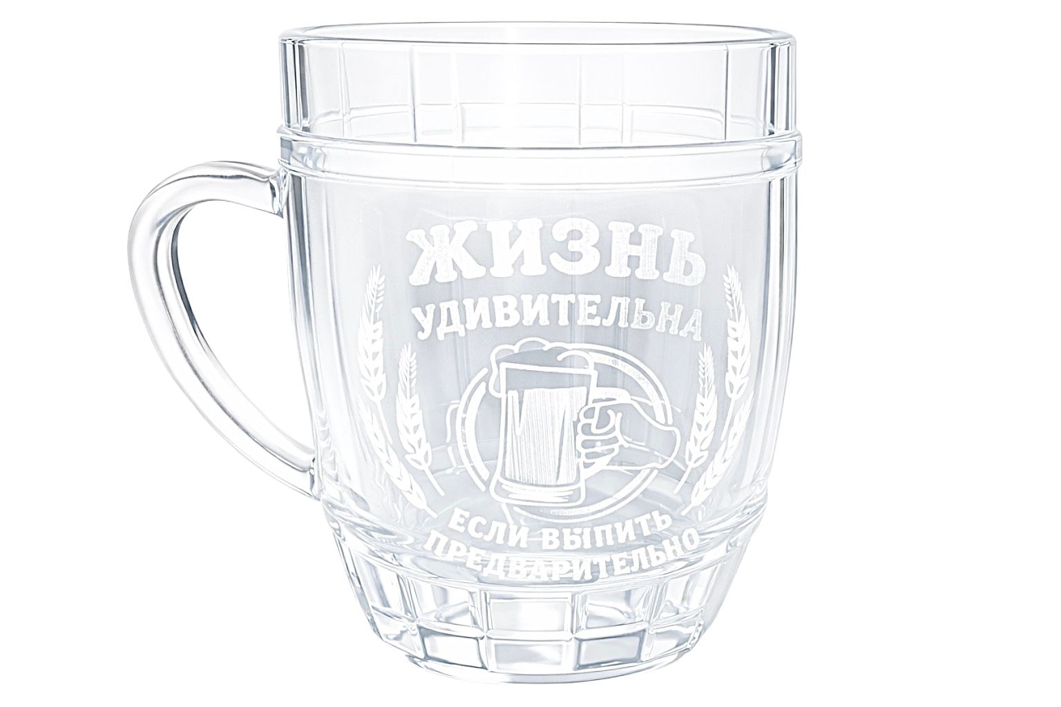 Пивная кружка объёмом 0,5 литра с юмористической надписью «Жизнь прекрасна, если выпить предварительно» предназначена для подачи пива и других напитков. Изготовлена из качественного стекла, обеспечивающего долговечность и удобство использования. Отлично подходит для домашнего использования, баров, ресторанов или в качестве оригинального подарка с шутливым настроением.