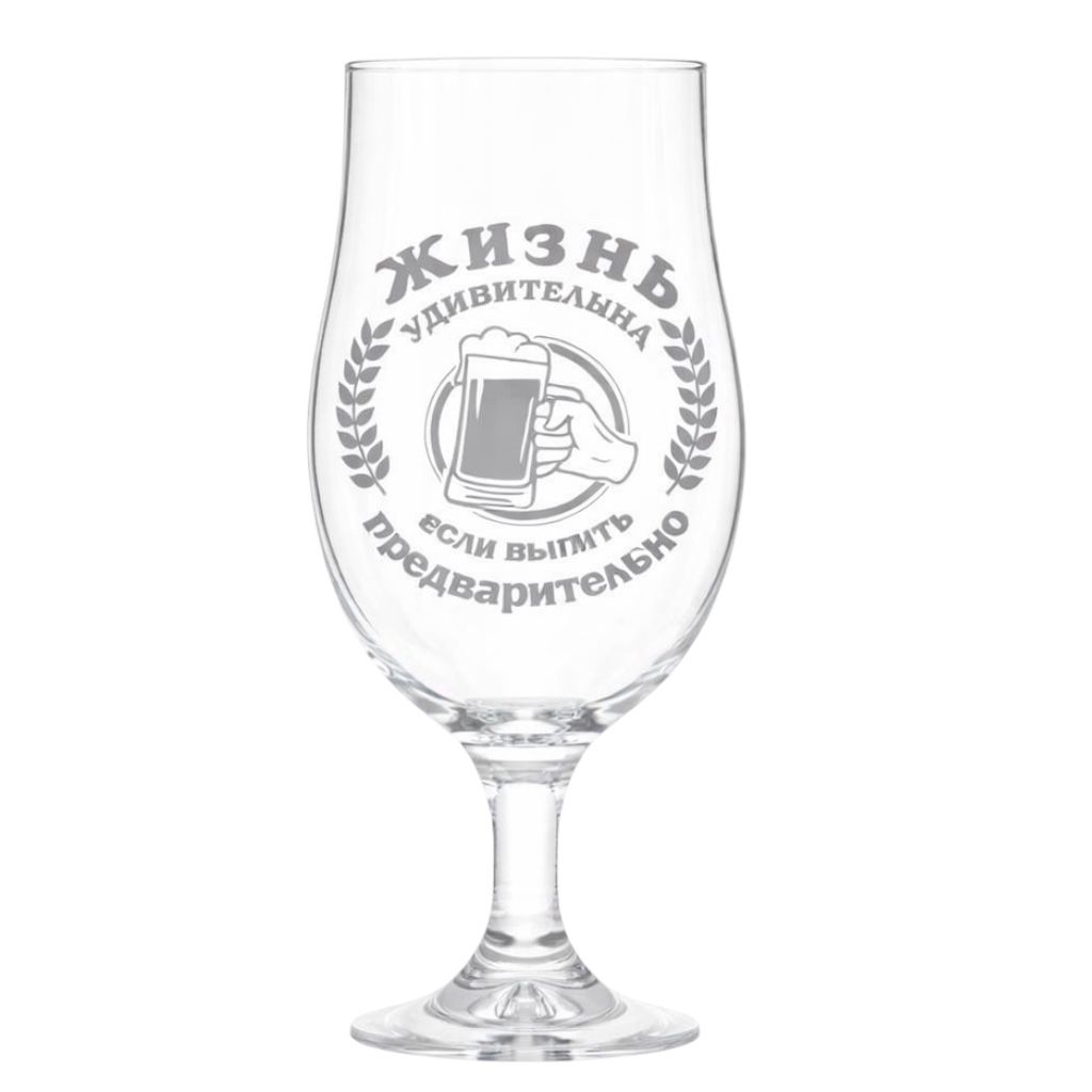 Оригинальный пивной бокал с шуточной надписью «Жизнь удивительна, если выпить предварительно» поднимет настроение и станет отличным подарком для любителей пива и юмора. Вместительный объём позволяет в полной мере насладиться любимым напитком, а прочное стекло обеспечивает надёжность и долговечность. Удобная форма бокала комфортно лежит в руке и подчёркивает вкус и аромат пива. Идеально подходит для домашнего использования и весёлых встреч с друзьями.